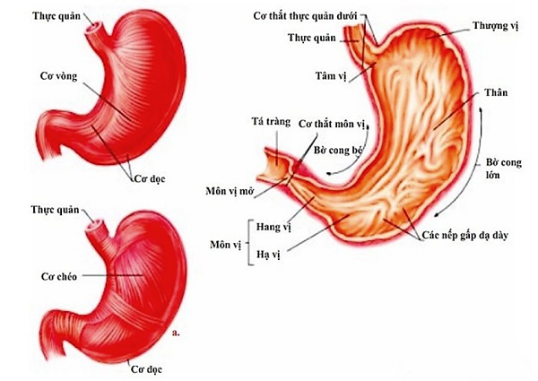 Dạ dày có nhiều bộ phận nhỏ khác nhau