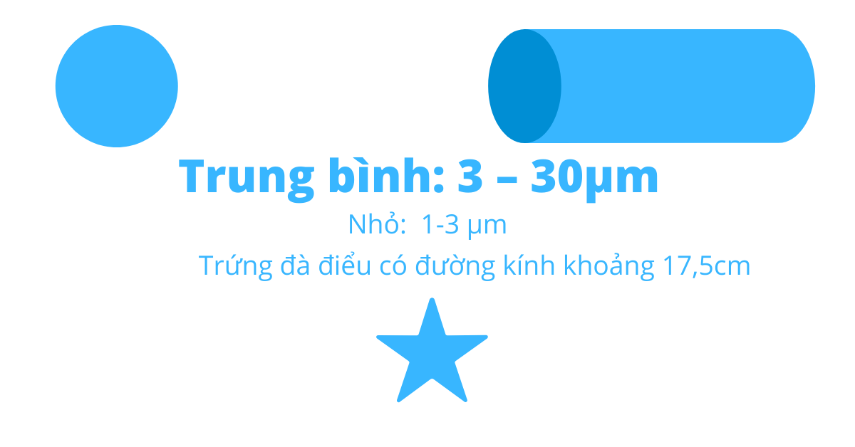- Kích thước trung bình của tế bào nằm trong khoảng 3 – 30μm.